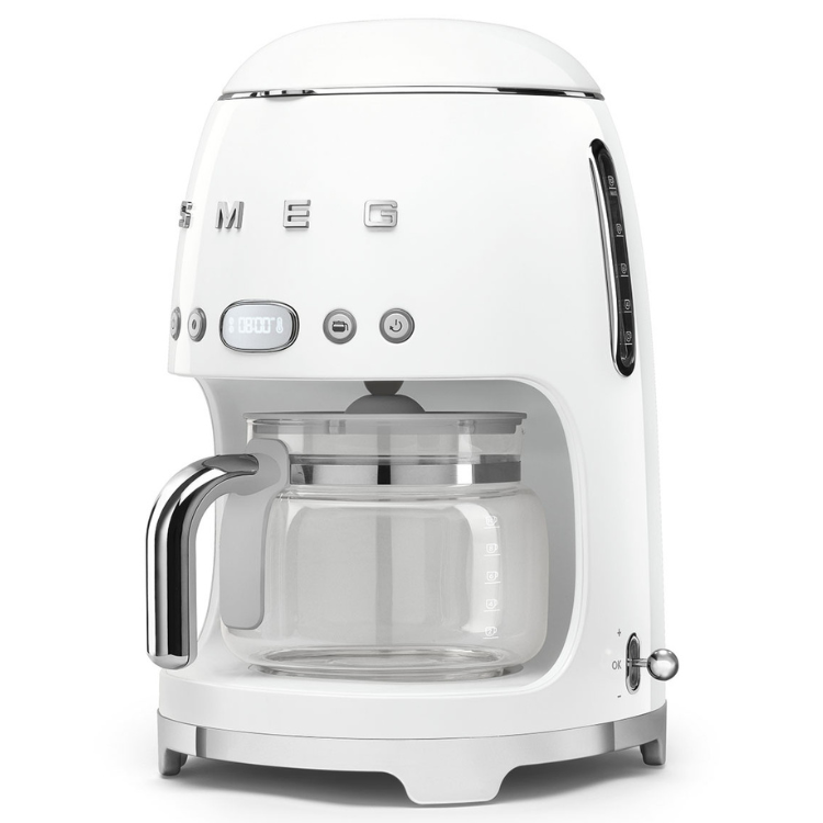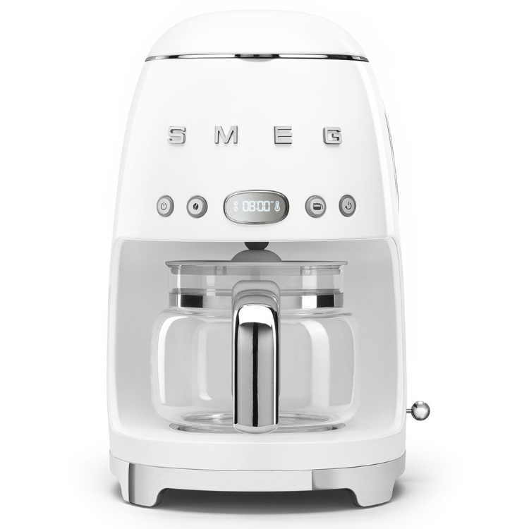 A Máquina de Café de Filtro Smeg Anni 50 é ideal para preparar um delicioso café americano, contando com um elegante jarro de vidro e capacidade para até 10 chávenas, perfeita para partilhar bons momentos ao longo do dia.