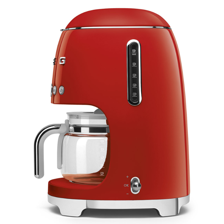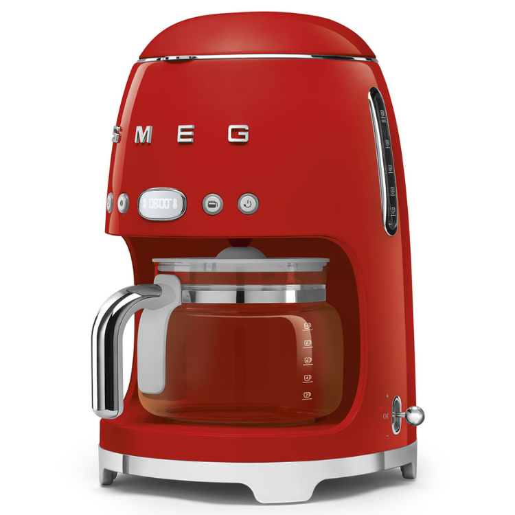 A Máquina de Café de Filtro Smeg Anni 50 é ideal para preparar um delicioso café americano, contando com um elegante jarro de vidro e capacidade para até 10 chávenas, perfeita para partilhar bons momentos ao longo do dia.
